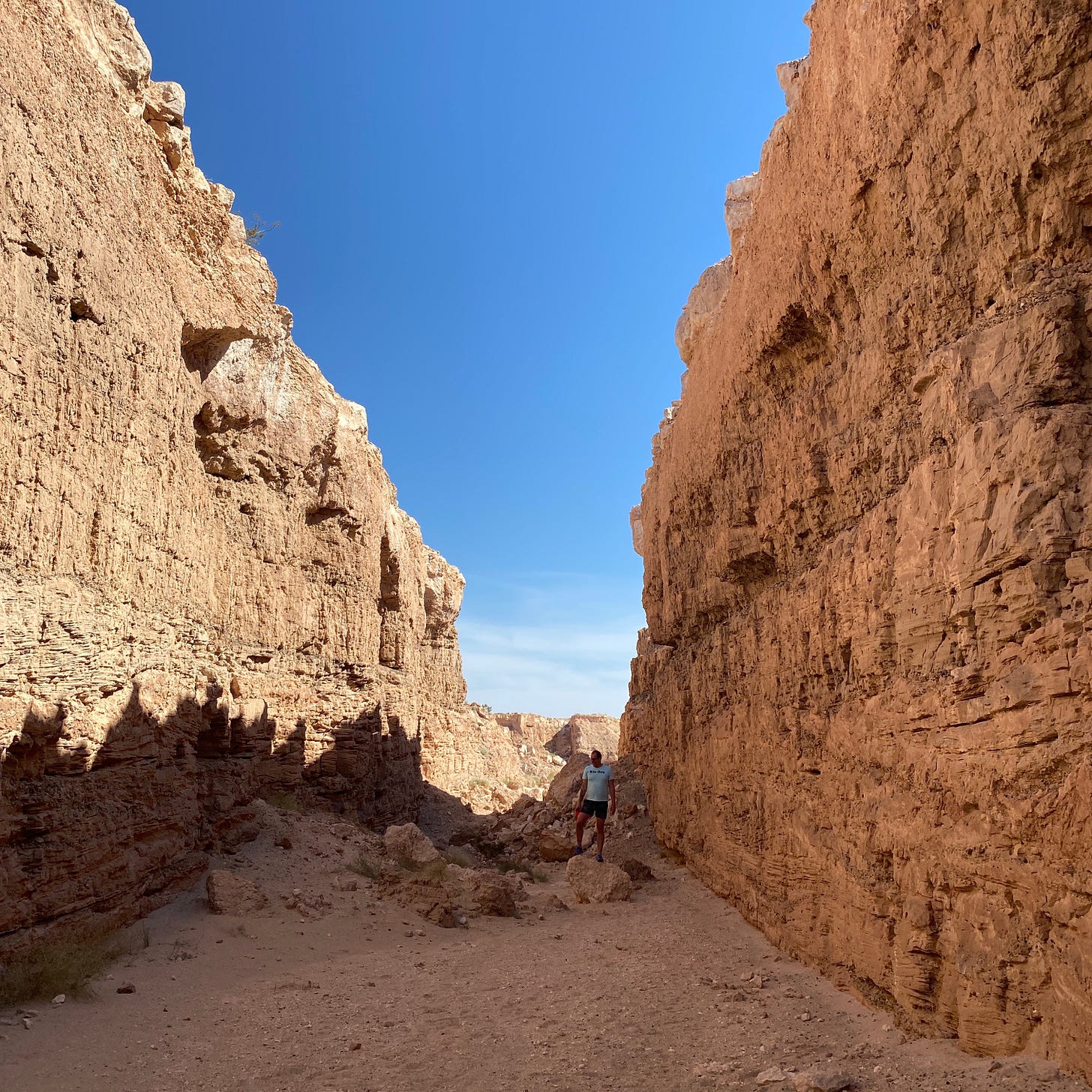 It was hard to tell when we had arrived. I kept driving. I kept staring at the desert. Cacti. Rocks. Shrubs. Cacti. Rocks. Shrubs. Abandoned tire. Remnants of humans. We were close. And then, out of the repetition, pattern, and monotony, there it was - Double Negative. Out of the desert appeared a repeating shape on the edge of a river valley oasis. The blank void is a result of displacing over 240,000 tons of desert sandstone. The human touch had been here. In the age of climate change, we cannot help but hear of our constant scars that we are creating to our home through our behaviors. And here was a reminder that our self-inflicted wounds are not healing. Here in this place, Heizer has shown us a reflection of ourselves since 1969.